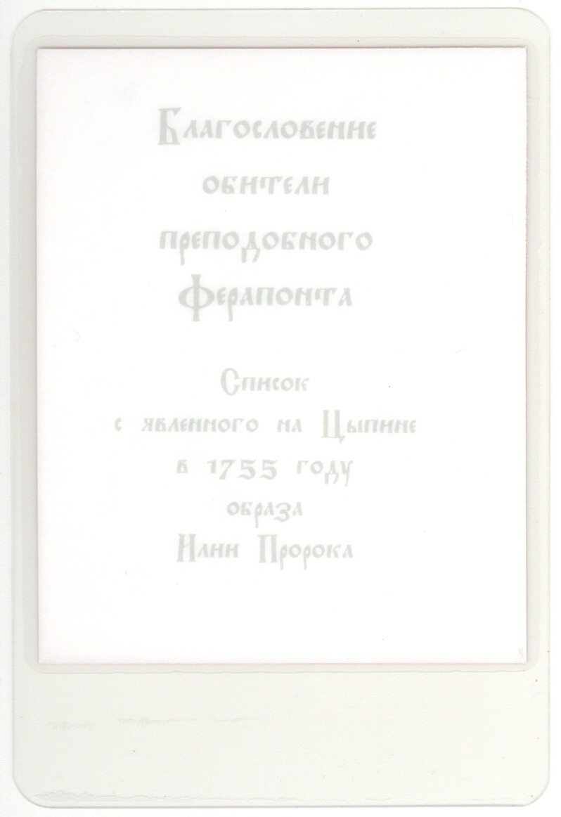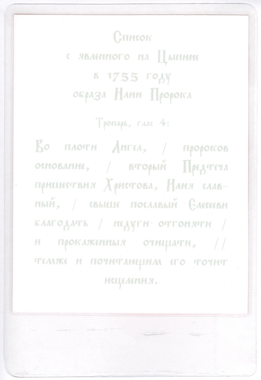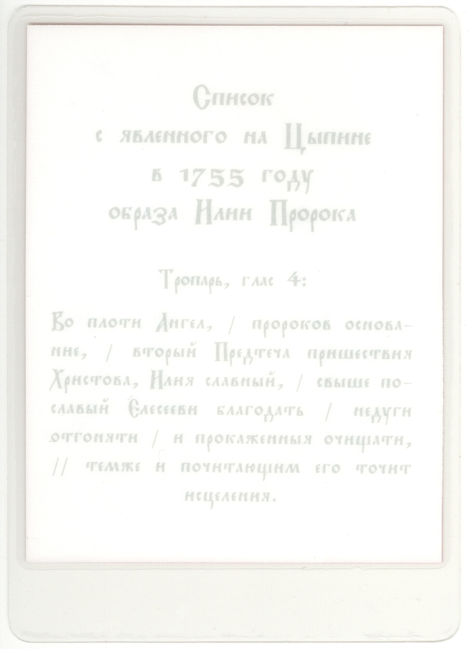 Список с явленного на Цыпине в 1755 году образа Илии Пророка.