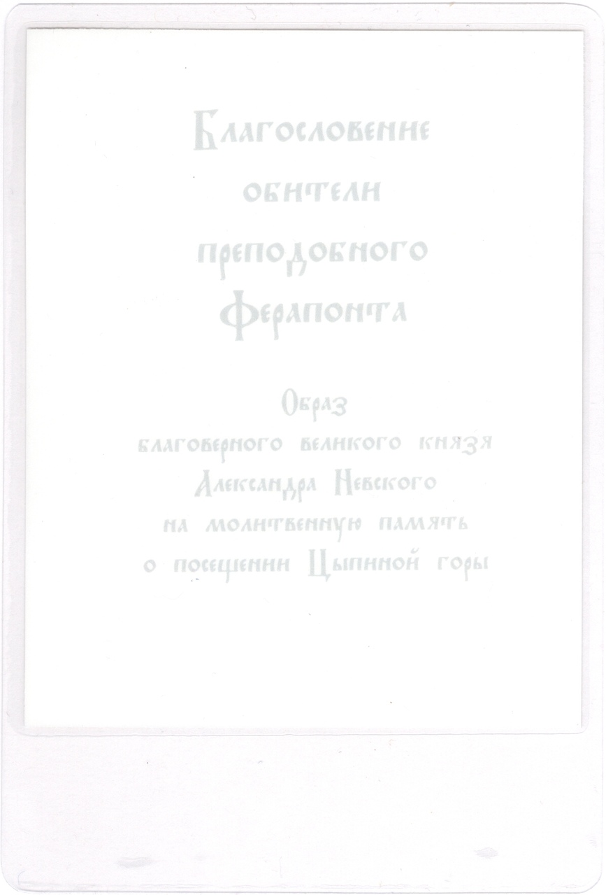 Аналойная икона блгв. кн. Александра Невского выполнена иконописцем-реставратором высшей категории Соколовой Верой Фёдоровной в ферапонтовской иконописной мастерской в 2007 году.