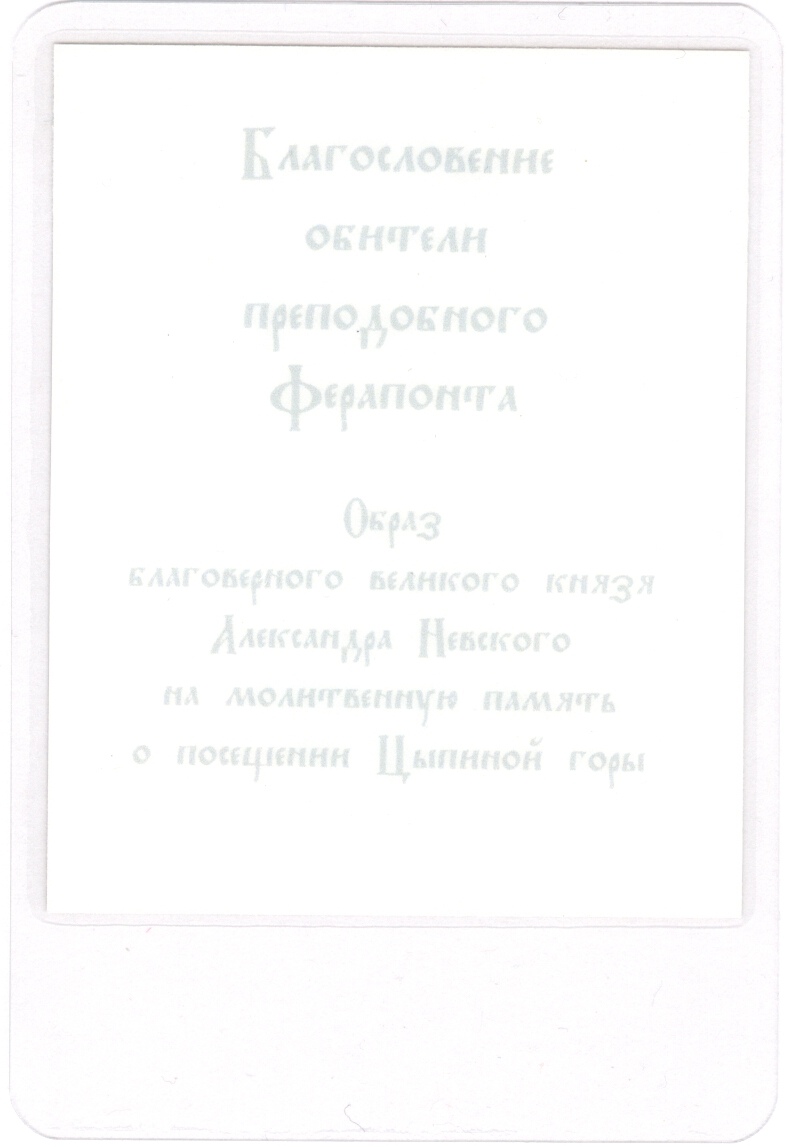 Аналойная икона блгв. кн. Александра Невского выполнена иконописцем-реставратором высшей категории Соколовой Верой Фёдоровной в ферапонтовской иконописной мастерской в 2007 году.