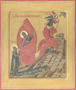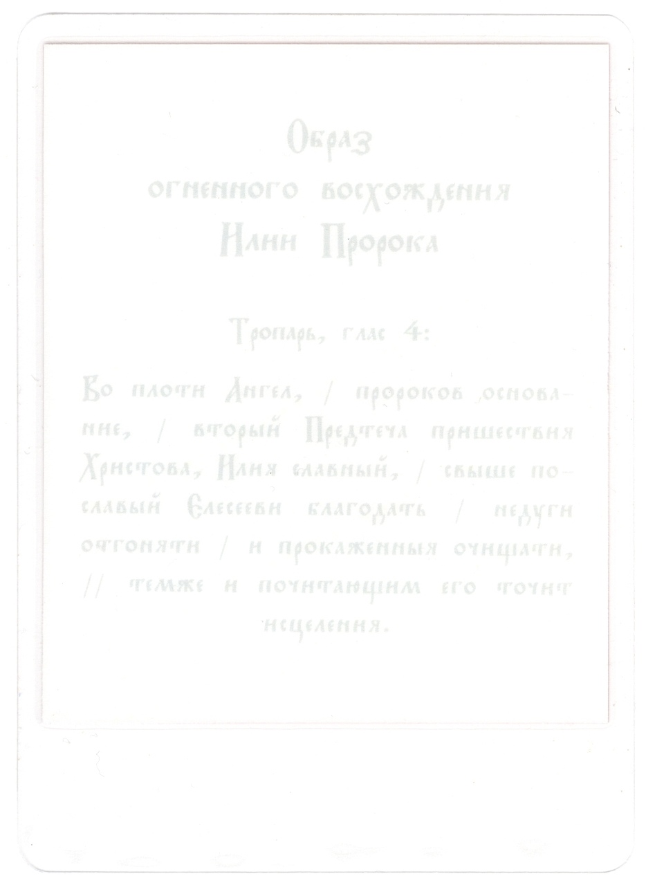 Аналойная икона прор. Илии выполнена иконописцем-реставратором высшей категории Соколовой Верой Фёдоровной в ферапонтовской иконописной мастерской.