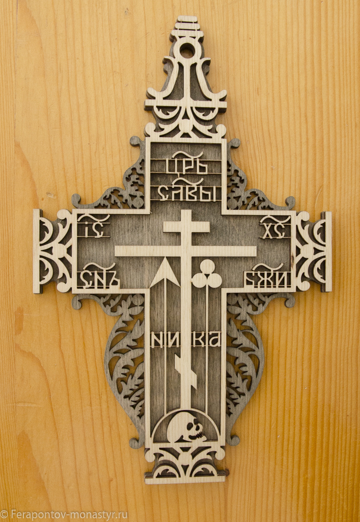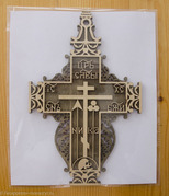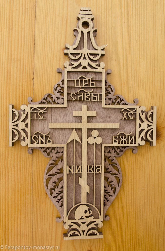 Крест изготовлен методом лазерной резки. Материал: фанера. Размер: высота 275 мм., ширина 175 мм., толщина 8 мм. Имеет вверху отверстие для крепления. Пропитка: цвет теплый или холодный. Упакован в прозрачный пакет.